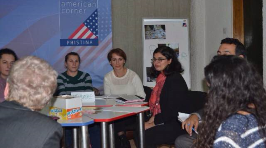 Në ambientet e Këndit Amerikan, znj. Maja Adiga, zëvendës - asistente e sekretarit të shtetit për programe Akademike në kuadër të Byrosë për çështje arsimore dhe kulturore të Departamentit Amerikan te Shtetit u takua me partnerë si; Biblioteka Hivzi Sulejmani Dega – “ Biblioteka Përkujtimore”, Këndi Amerikan dhe SOS – Fshatrat e fëmijëve të Kosovës. Qëllimi i takimit ishte programi që u ndihmon grave të margjinalizuara të shoqërisë të mësojnë shkrim-lexim, anglisht dhe kompjuter.